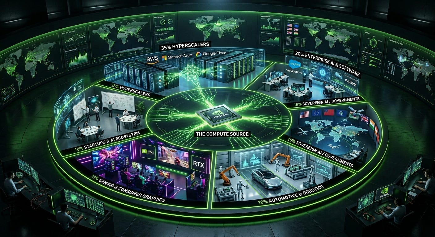 Data Center Dominance: The “Nervous System” of the business has reached its final form. The Data Center segment now represents 90% of total revenue. This shift highlights Nvidia’s successful pivot from a gaming-adjacent hardware vendor to the primary architect of the global cloud. Every major hyperscaler and nation-state is now effectively a tenant in the house that Jensen built.